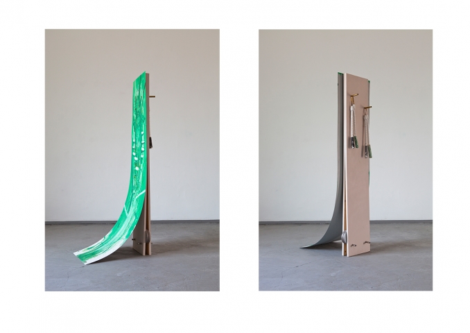 עבודותיו של מתן אורן עומדות בתפר שבין פיסול לציור, התוצאה היא אלמנטים פיסוליים בעלי איכות תיאטרלית, ציור העוזב את הקיר ומתמקם בתוך החלל ובכך מביא לעיני הצופה את שני צדדיו. פעולת הסתה זו מונעת מהרצון לבחון את המפגש של הצופה עם הדימוי המצויר לאובייקט וטשטוש ההיררכיה שבין החזית לגב העבודה.