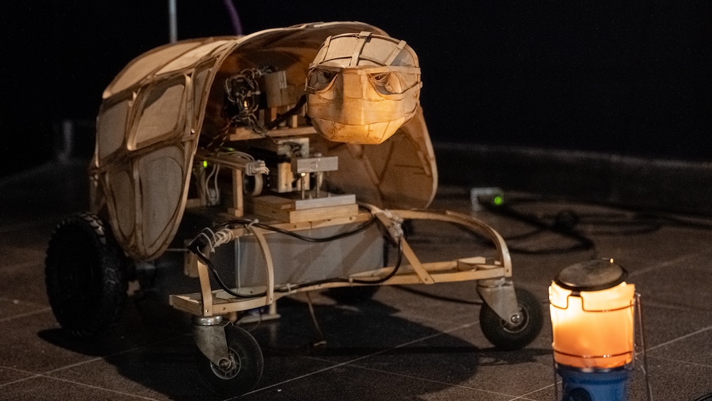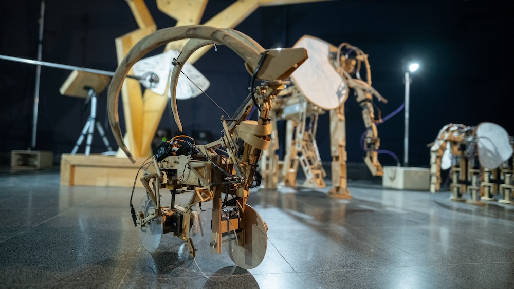 הסיור בספארי מתחיל כבר בחלל הכניסה, שבו נאספים ארגזי השילוח של החיות הרובוטיות בדרכן חזרה ממסעות ברחבי העולם. הארגזים הסגורים רוחשים בשלל רעשים, המזמינים להפנות את המבט פנימה ולדמיין את תוכנם. בקומה העליונה מתגלים לפנינו בעלי החיים, ביניהם – אווה האנפה, המרחפת בלבה של להקת פנסי העוקבים (followers), שנעים כמעין להקת ציפורים, שדה שיבולים או עשרות עיניים עוקבות המאירות לנו את הדרך; קופי הלנגור שמחליפים מבטים מלאי משמעות ולצידם תיבות הנגינה (vibes) שממלאות את החלל בצליל; קבוצת קופים טמרינים מסתודדים ולצידם קוף האלפא הגדול מפנה אלינו מבט חודר, כמו תוהה על גורל הטבע בעידן הטכנולוגי הנוכחי. עיני הקופים רבות ההבעה הן למעשה עיני זכוכית אנושיות שנוצרו בגרמניה בסוף המאה התשע־עשרה.