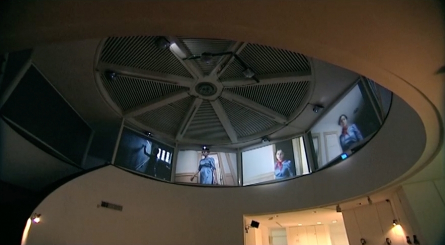אחד המרכיבים בתערוכה מתייחס לחלל המוזיאון כווילה מוגדלת, בית ענק מודרניסטי ועגול, ומין “אח קטן” לגוגנהיים שבניו יורק, שנבנה כמה שנים לאחריו. הכניסה מהווה מבואה לחלל העליון של התערוכה, המרכז את חדרי הילדים – חלל שבו “הכל מותר”: חדר פנטזיונרי של האמן גיל יפמן, ייצוג של טקסטים פואטיים/ארוטיים בשפת סימנים של האמנים רומי אחיטוב ואורית קרוגלנסקי, כוריאוגרפית סימנים מומצאת לשיר “בדד” של טל שושן, אקט פיתומי (דיבור מהבטן) של אימוגן סטידוורת’י או נאום של צ’פלין מתוך “הדיקטטור הגדול” המסומן על ידי נואם ערוף ראש, בעבודתו של האמן ג’ורדן וולפסון. עוד במתחם העליון של התערוכה: סימני דרך של טריקסי וייס מאירים את תשומת לבו של המבקר לעשייה ולפעולה. בין הטרקלין לחלל העליון, בספירלה של שמונה “חלונות”, עבודת הווידיאו של אירה אדוארדובנה מספרת סיפור המתרחש בנופים שונים. בתוך הנופים הללו האמנית נתונה לסימני דרך המובילים אותה, בסופו של דבר, לשומקום.