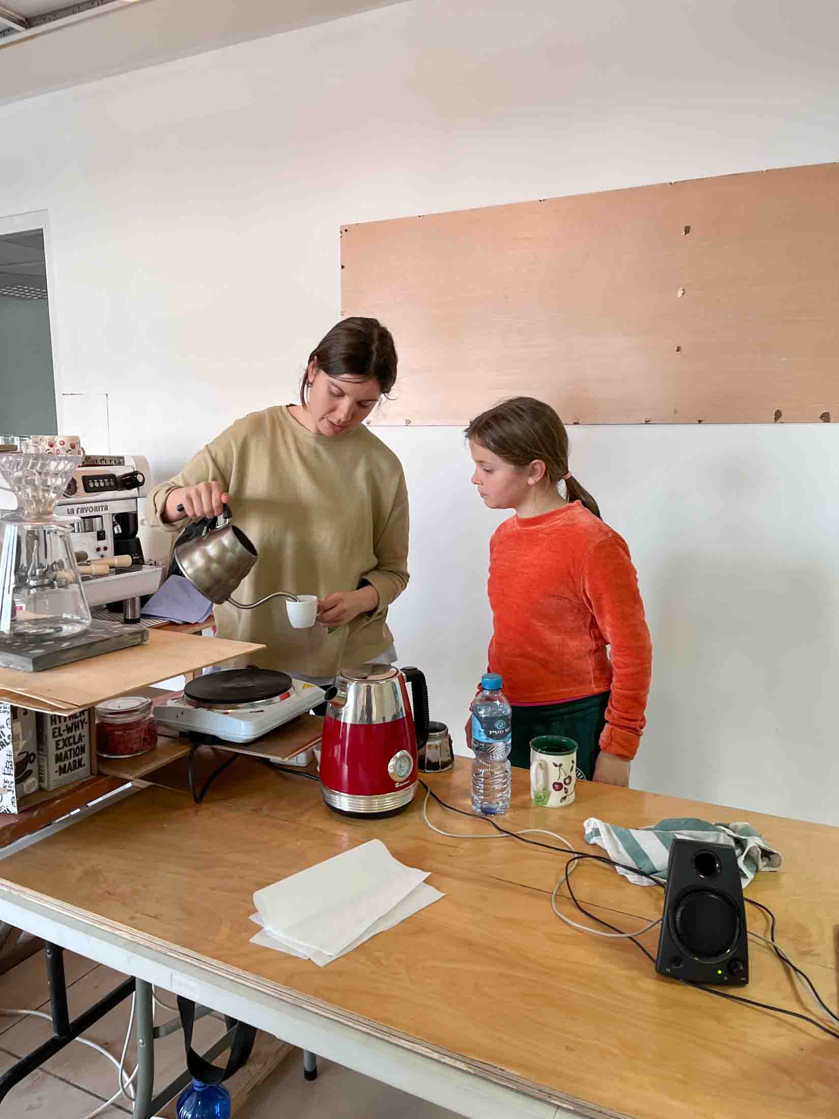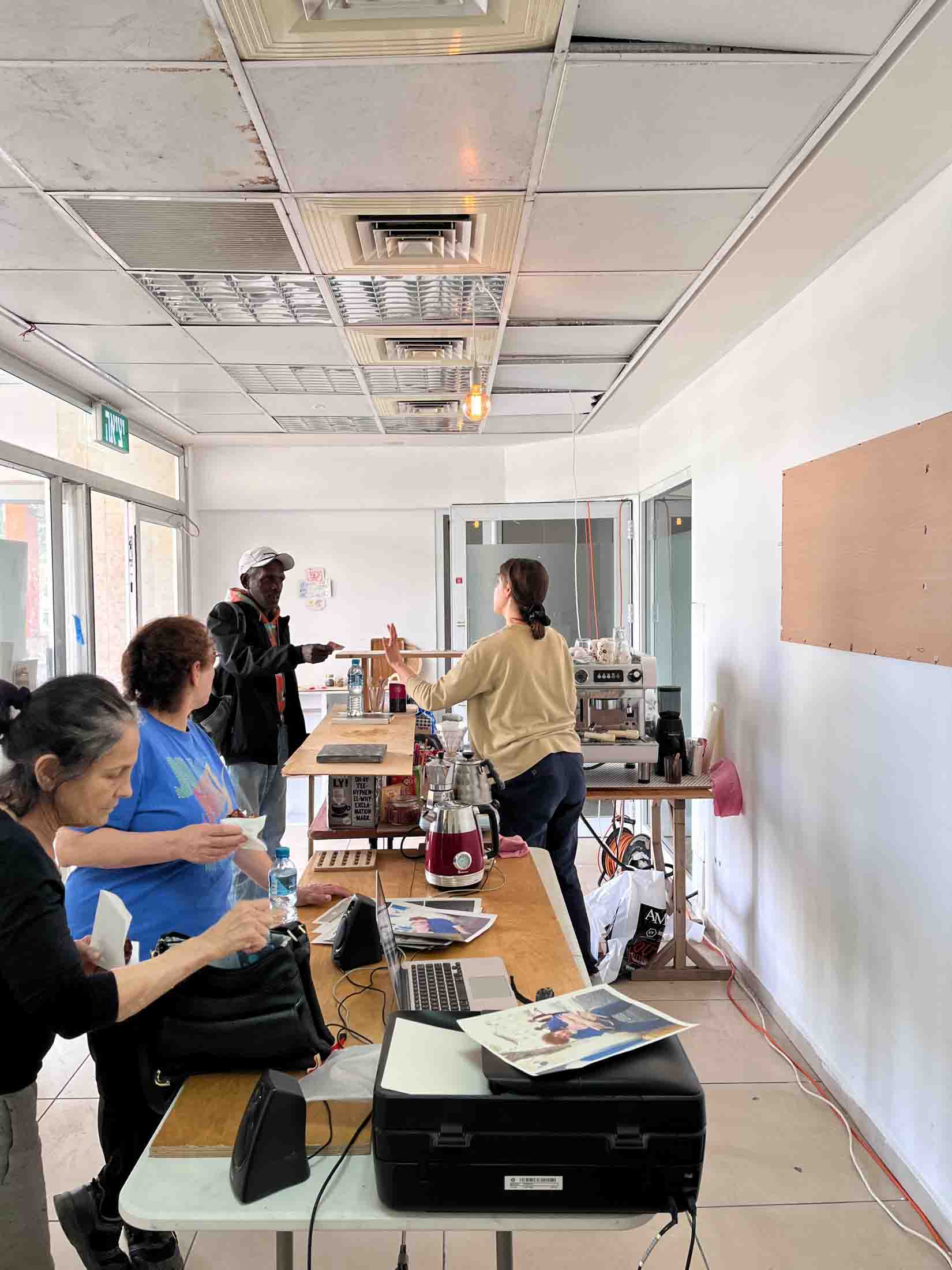 במהלך יום הפעילות היחיד של בית הקפה יצרנו ”קיר לקוחות קבועים“ שהציג תצלומים של הלקוחות והמבקרים. הצילומים נלקחו בשיתוף פעולה עם הבריסטה תומר פייגין, שהגיעה למשמרת עם מצלמת כיס דיגיטלית. הצילומים הודפסו בזריזות על נייר משרדי פשוט ונתלו על חזית החנות במומחיות על ידי נדיה, לקוחה קבועה שלנו.