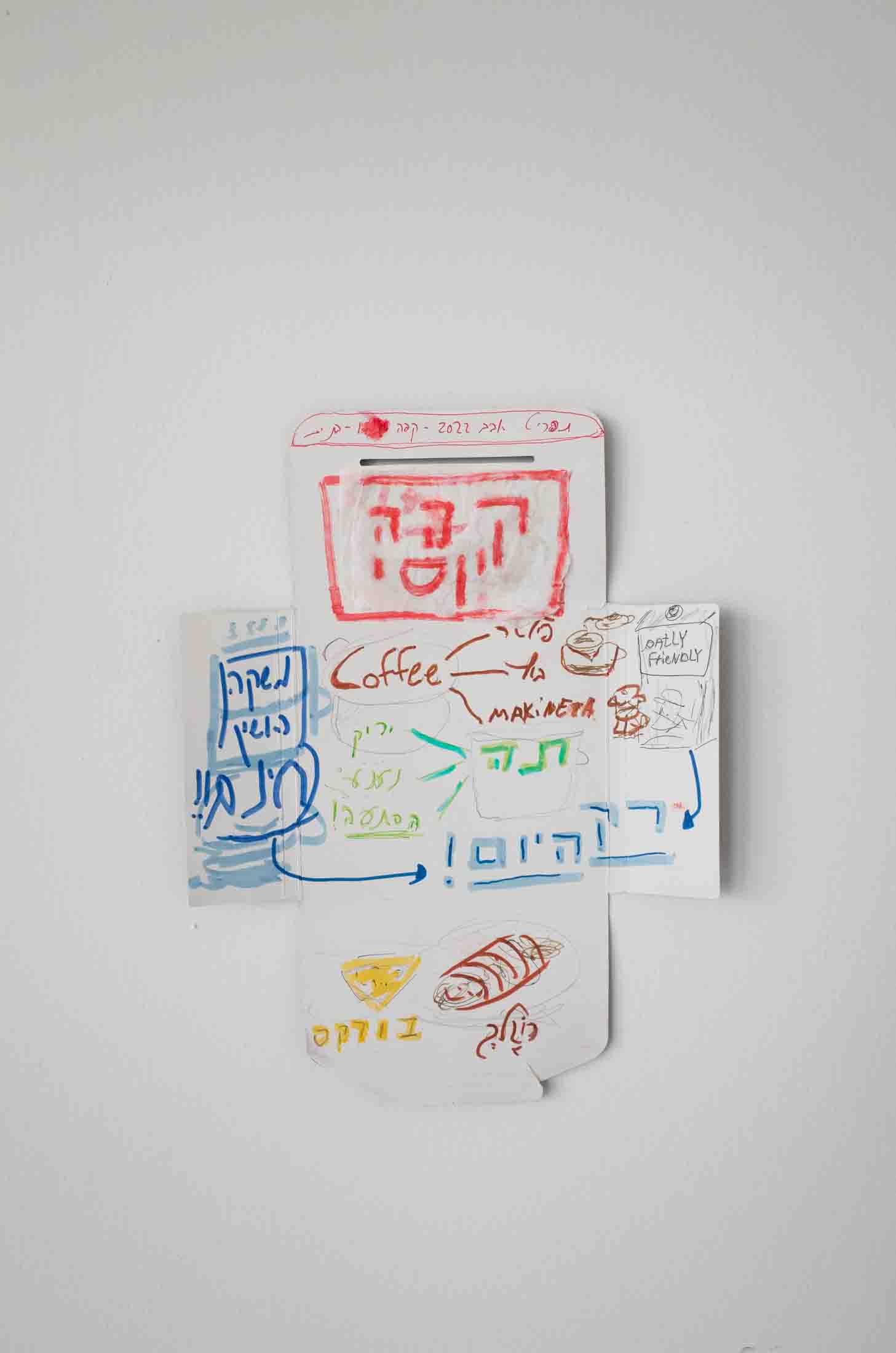 ״במרכז המסחרי רמת יוסף אין בית קפה. אם מתעקשים, אפשר לשבת בשולחנות של המאפיה, או לקנות קפה במכולת, אבל בית קפה-כסאות-שולחנות-מלצר-עיתון זה לא כלכלי כאן. ״קפה יוסי״ הגיב למציאות הזאת באופן ישיר. הוא חשב על הגשת הקפה כמנגנון של כינוס והשתהות, ובבית הקפה כמרחב פתוח שמאפשר מפגש חברתי ספונטני. שכרנו מכונת קפה מקצועית שבסופו של דבר לא עבדה ושימשה כתפאורה. בסופו של דבר הגשנו קפה פילטר ומקינטה. פה ושם עירבבנו קצת קפה שחור.